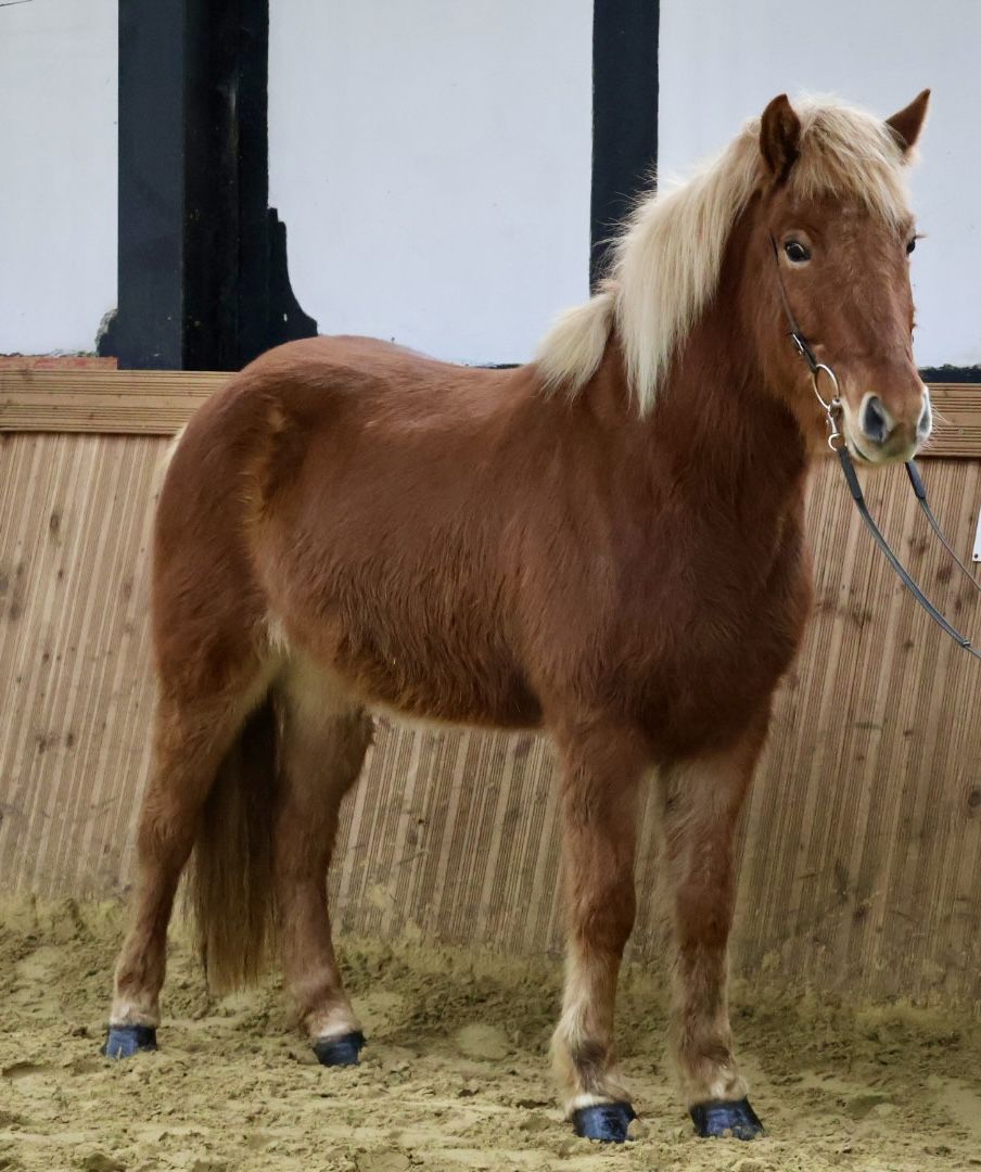 Finn Geboren: 2018 Größe: 1,44 m Geschlecht: Wallach Gang: Naturtölter Farbe: Fuchs V: Íslandus vom Lipperthof VV: Lukku-Laki frá Stora-Vatnsskardi VM: Isafold frá Bjargshóli M: Pöll frá Dalsmynni MV: Funi frá Dalsmynni MM: Dögg frá Kjarnholtum I FINN ist ein robuster Naturtölter mit viel Takt und starken Nerven. Er ist ein liebenswerter Kumpel mit vielseitigen Einsatzmöglichkeiten. FINN liebt lange, entspannte Geländeritte, aber auch die